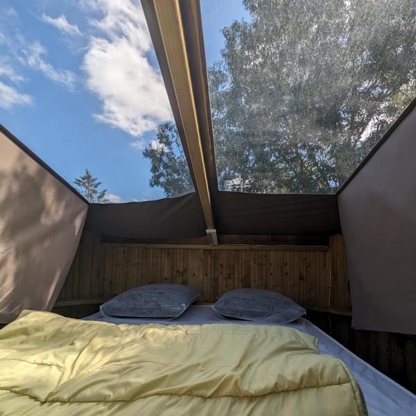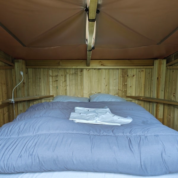 Looking for ready-to-go comfort without losing that authentic camping feel? The Lonna Tent is for you! Made of canvas and wood and raised on stilts, it’s perfect for short stays—especially if you’re cycling through. Fully furnished and ready on arrival, it offers a peaceful place to rest after a day of riding or exploring.