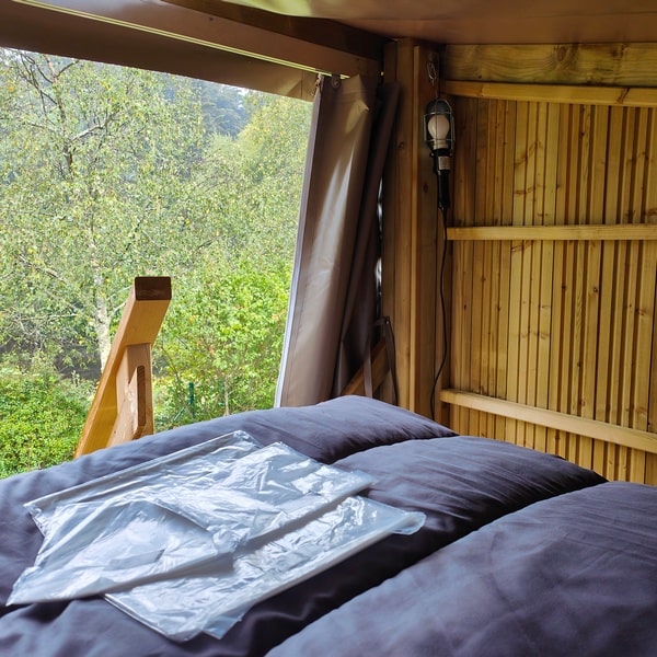 No kitchen in the tent. Guests can use the campsite’s shared kitchen and “Cyclists Welcome” amenities.